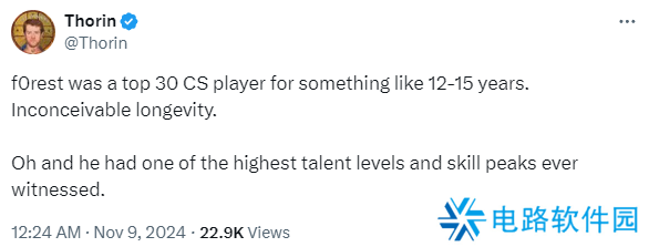 在瑞典传奇选手f0rest宣布退役后,英国知名电竞记者Thorin在个人社交媒体账号上对f0rest致敬并给出高度评价。