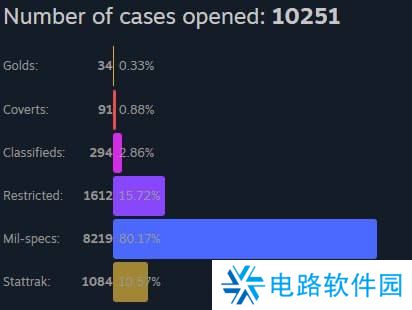Virtus.pro战队步枪手在他的账号上总计开箱10251个,花费2.3万美元,出金34次。出金概率仅有0.33%