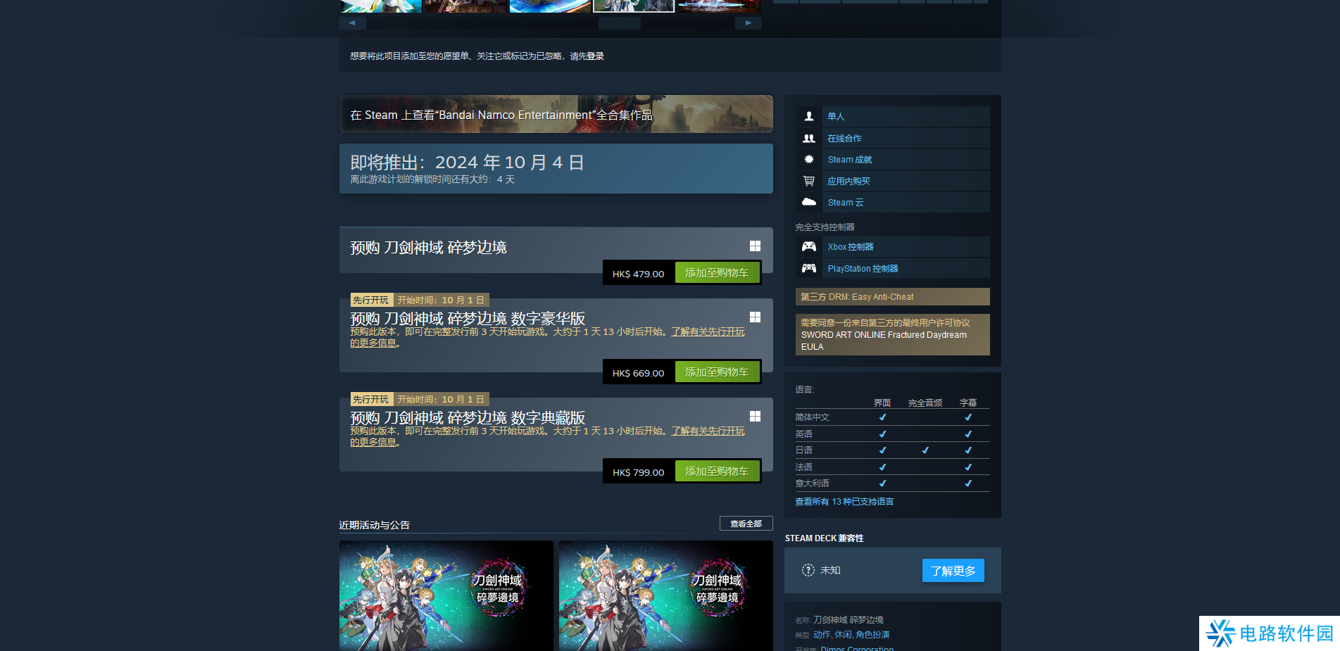 《刀剑神域 碎梦边境》游戏steam价格介绍