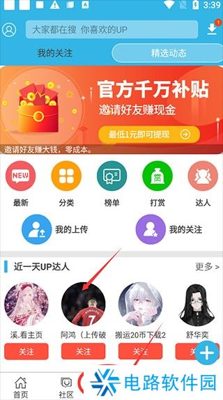 1、首先在当快站下载安装好软件,进入到主页面选择“up”功能按钮,然后点击进去找到达人排行,选择如图所示的达人。