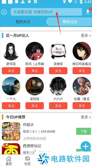 4、如果是想要找到自己想要开挂游戏的应用的话,那必须也是点击“up”功能按钮;
