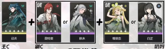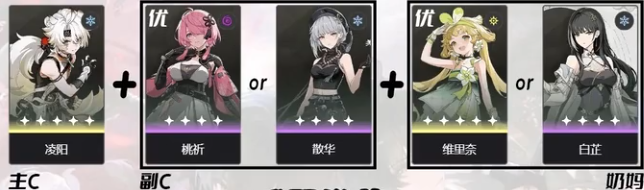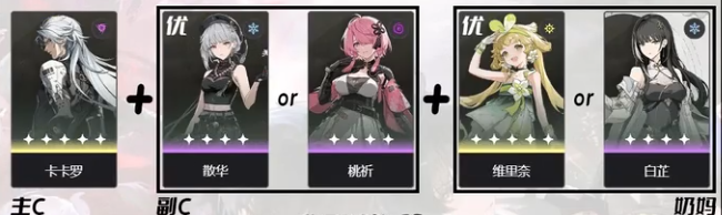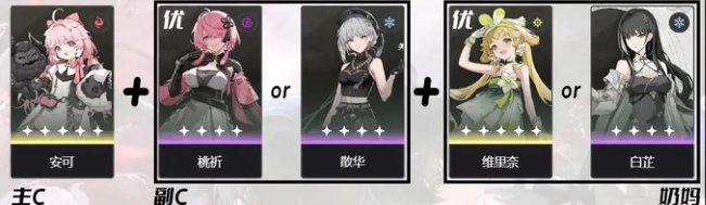 也有主C+2副C或者2主C+辅助这样的配队思路,主要目的是为了打出更高的输出,但前者需要较强的操作手法,后者需要一定的养成成本。