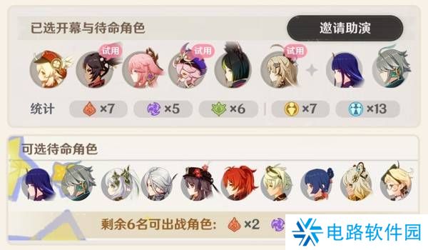 在已选角色处,还会统计各分类下的角色数量。抽取角色卡时也会展示。