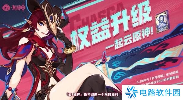 5.2版本内空月祝福生效期间的账号每天登录云原神可以获得额外10小时云原神时长。