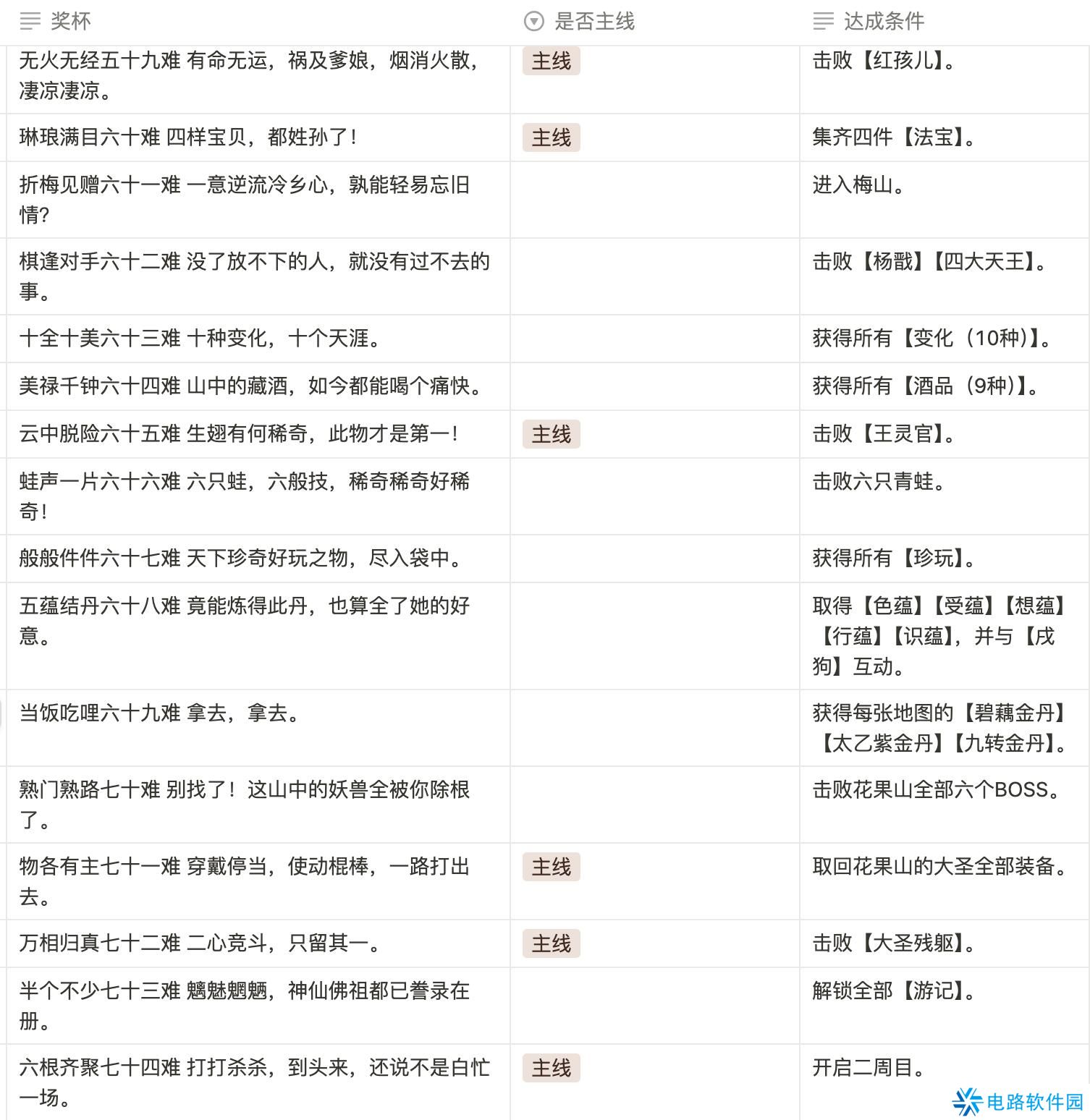 《黑神话:悟空》中也设定了九九“八十一难”,在游戏中是以成就的方式呈现的,想要都完成也不简单,今日带来的就是这八十一个成就的完成条件,了解了对应的成就要求,玩家不论是在几周目,在主线或支线,都可以顺带将成就完成,接下来就一起看看吧。
