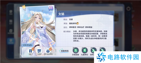 定位:魂火回复+群疗。水阵容前期辅助,觉醒增伤和回血,适合前期过渡。