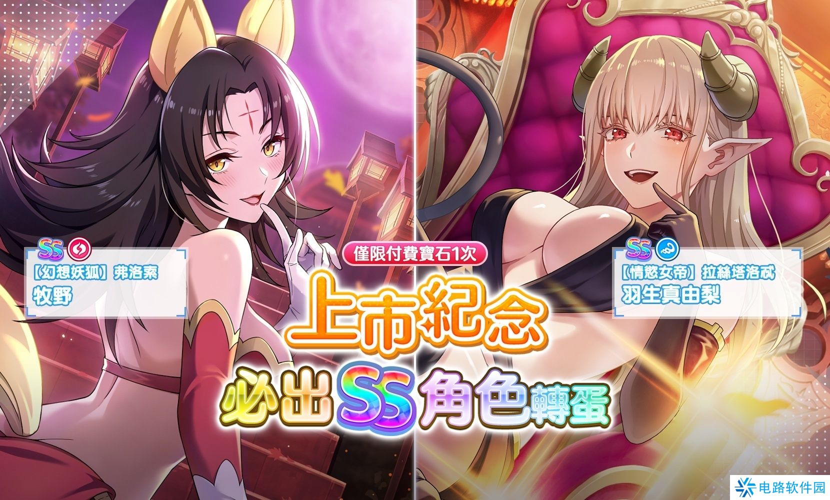 更有开服限定SS角色震撼登场,包括“幻想妖狐”弗洛索(牧野)与“情欲女帝”拉丝塔洛忒(羽生真由梨)。首位高级转蛋特选角色,故事起点“救世之翼”莉莉艾露(天乃理里沙)惊艳亮相。
