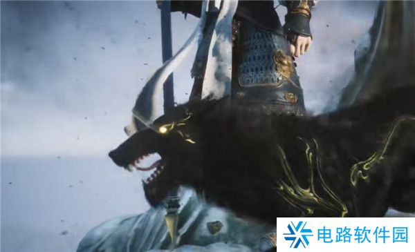 6.画面一转来到巨灵神这边,巨大的獠牙,而且右肩上站着一条手持长枪的男子,还有一条黑犬在不断狂吠。