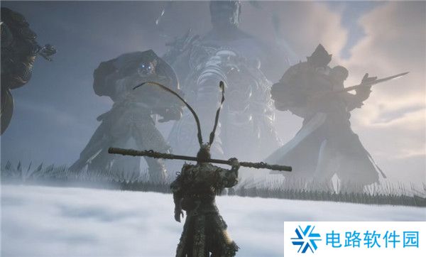 4.悟空一跃而下孤身面对天兵天将,天兵天将整齐划一出剑。