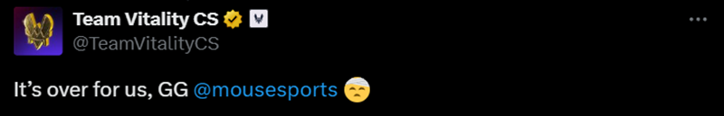 而戏精apEX也抓住机会上演一波“手臂受伤”的意外事故。而Vitality官推也写到:“我们完蛋了,GG