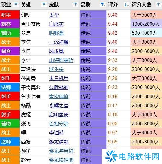 周年庆皮肤大部分都是免费可得,再加上本身优秀的品质,口碑评分一直都是很好的。但作为唯一的免费传说,鸣野蒿的显然还有更多的好评加持。9.4分在一众九分+皮肤中也排到了第二位。
