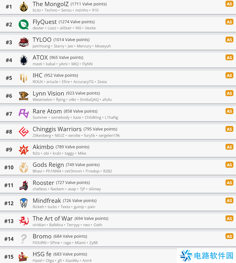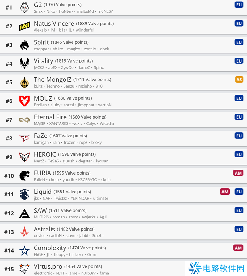 日前V社更新了旗下CS世界排名。鉴于明年起主要赛事的唯一邀请依据就是V社世界排名,因此从今年下半年开始,V社排名的重要性不断提升。
