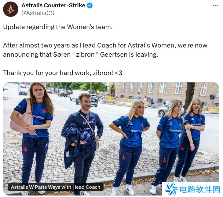 Astralis W主教练近两年之后,现官宣与Astralis女队分道扬镳。