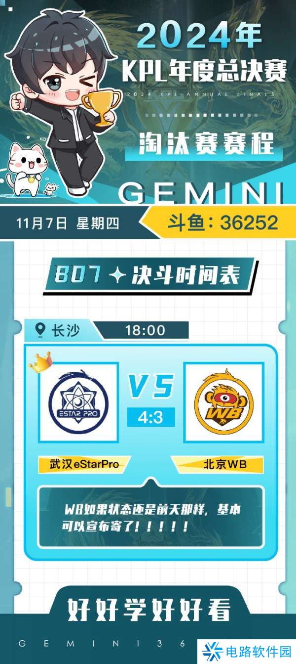 虎扑11月07日讯 狼星或将再次相遇,Gemini预测今日赛果:ES 4-3 WB!