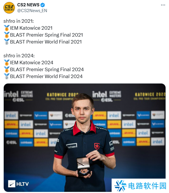 不过,sh1ro在2021年获得的冠军数量远不止此,他们获得了IEM 卡托维兹在内的总计7场大型赛事冠军。sh1ro也在当年获得了年度最佳选手TOP4荣誉。而在2024年,sh1ro仅获得3场大赛冠军,并且个人数据方面与2021年的自己相差甚远。