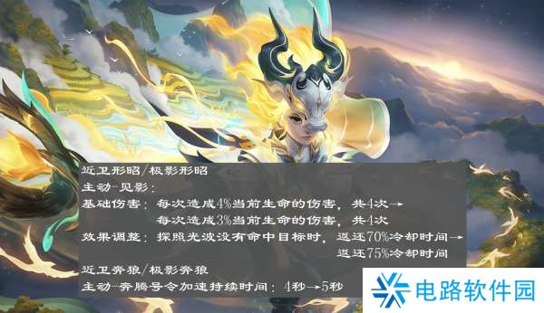 而近卫和极影形昭,造成4%当前生命值伤害降低到3%,伤害能力会下降,但却提高了5%冷却返还,从辅助能力上来,用伤害换冷却缩减无疑很值,是加强项的调整。