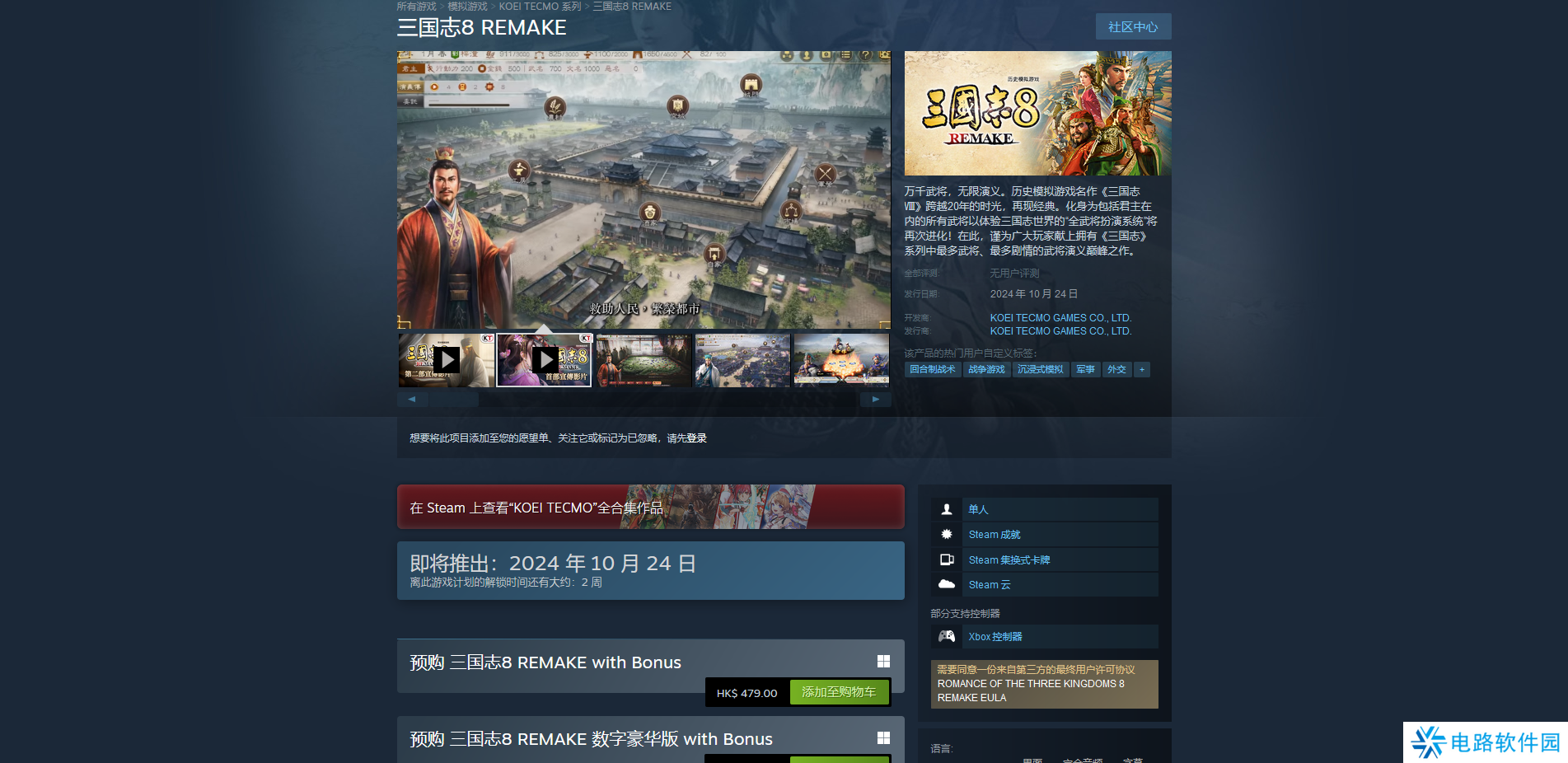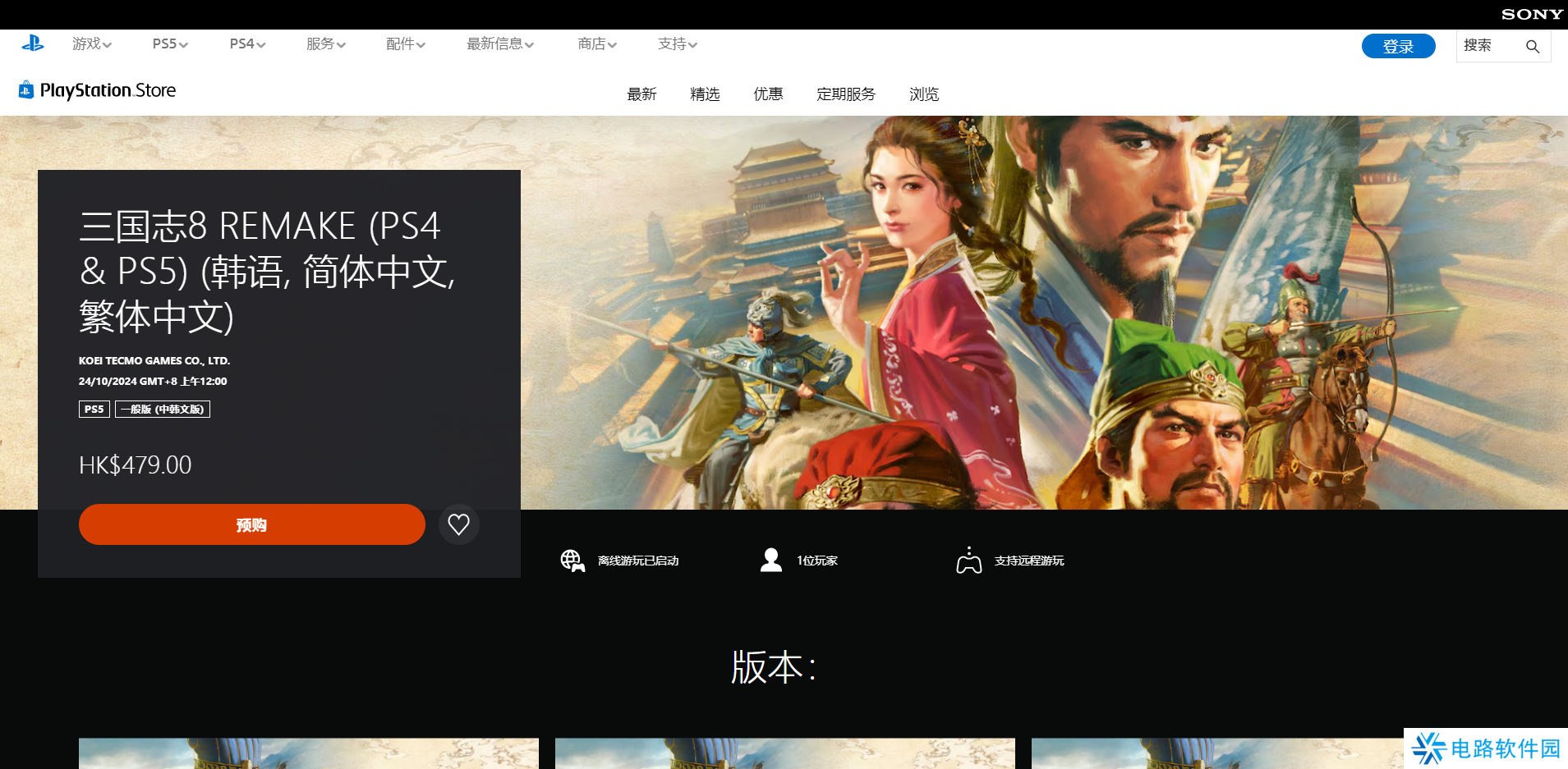 《三国志8重制版》是三国志系列的第八代的重制版,属于是沉浸式模拟回合制战术游戏,而这款游戏的登录平台只有Steam平台和PS平台,想要玩只需要在这两个平台购买下载就可以了,版本没什么区别,
