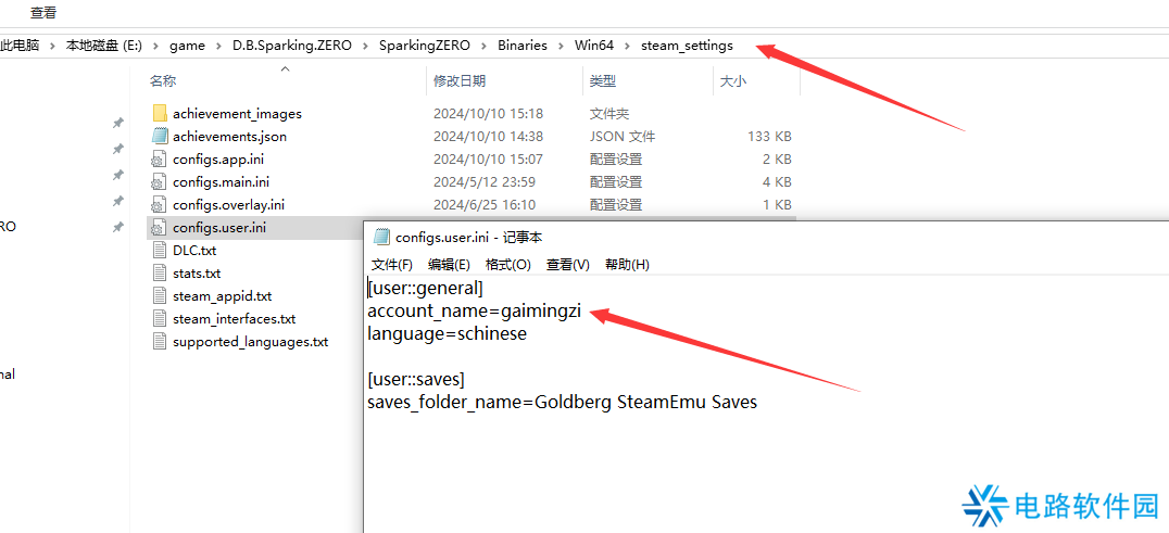 改名字:记事本方式打开SparkingZEROBinariesWin64steam_settingsconfigs.user.ini,把account_name=gaimingzi里面的名字gaimingzi改成自己想要的,保存。