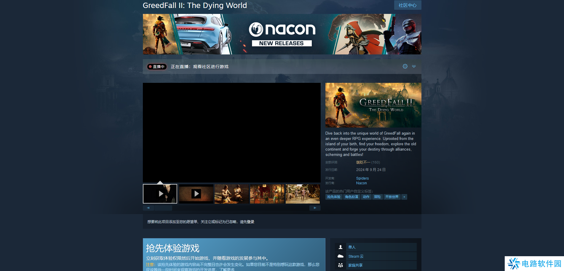 Steam平台购买链接:https://store.steampowered.com/app/1997660/GreedFall_II_The_Dying_World/。