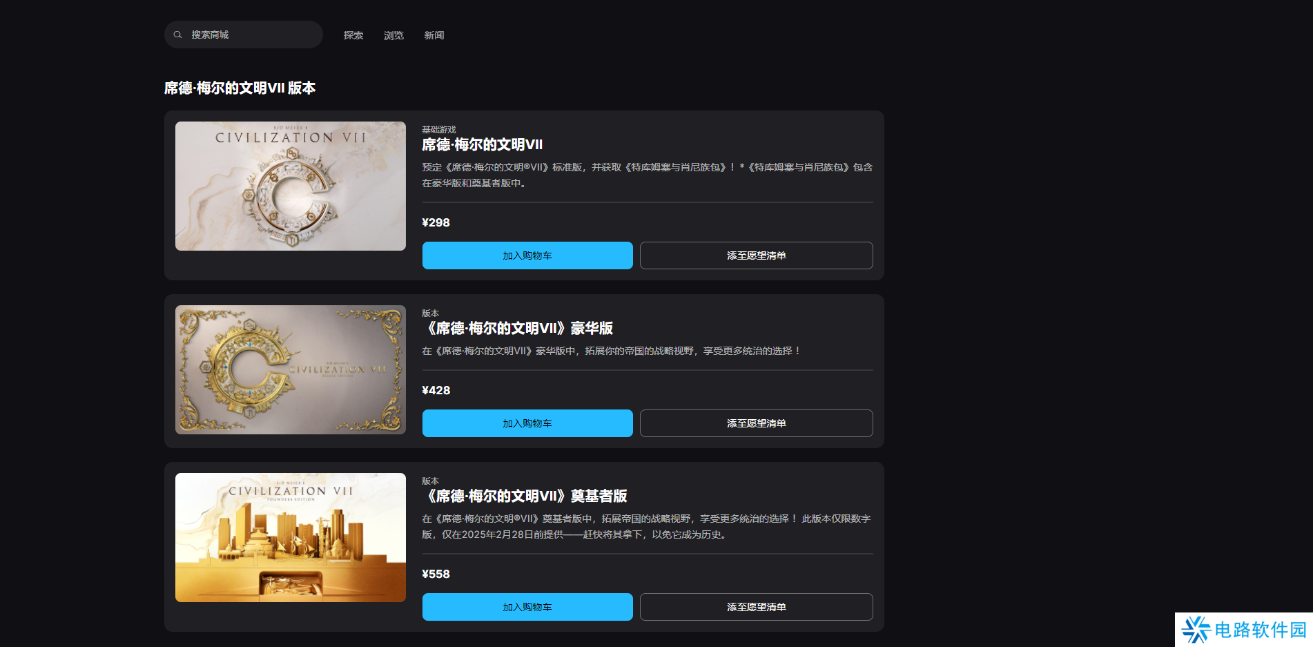 《席德·梅尔的文明VII》在Steam平台有标准版、豪华版和奠基版,售卖价格分别是人民币298元、428元和558元。