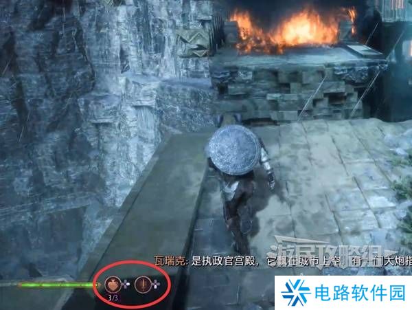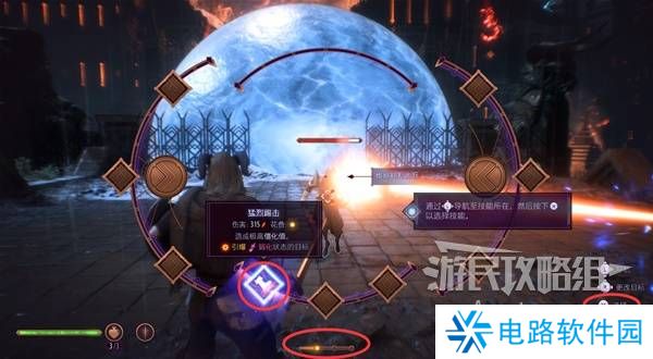 穿过传送门来到森林,使用重攻击(战士是挥盾)可以打破敌人的护甲(黄色)。