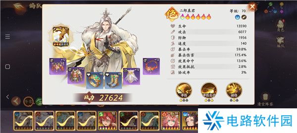 4、杨戬:一彩就行,出手位第三或第四,法宝带专属或者猴子专属,天赋追求全输出就暴击爆伤攻击均衡加点,适当点生命和防御。