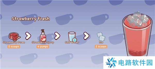 ——(玻璃杯)2勺草莓酱+4泵草莓糖浆+2勺冰+冰水