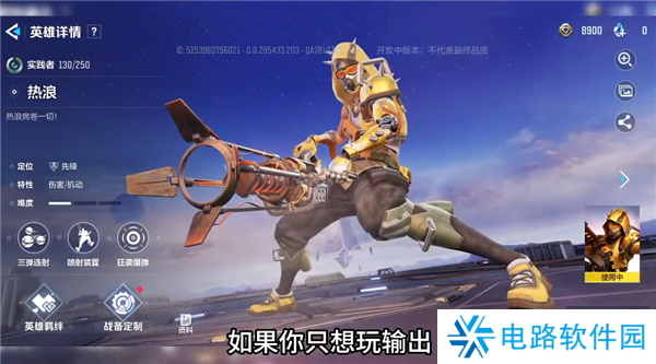 初始角色“热浪”,定位为先锋,属于输出类职业,如果你只想玩输出的话,这个角色可以一直练下去;