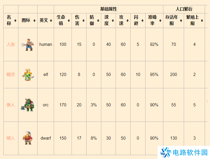 下图为世界盒子的全种族数据: