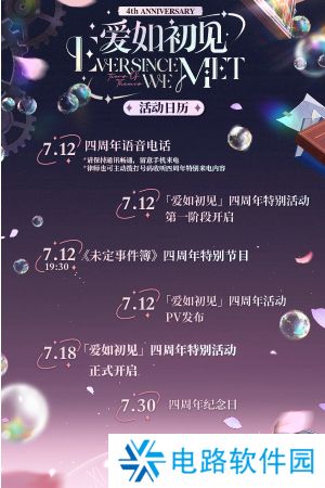 1、7月12日11:00,「爱如初见」四周年特别活动即将分阶段开启