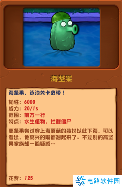评价:前期水上防御的得力助手,仅需125阳光即可拥有不俗的防御与攻击力。最吸引人的是,无需额外种植睡莲!