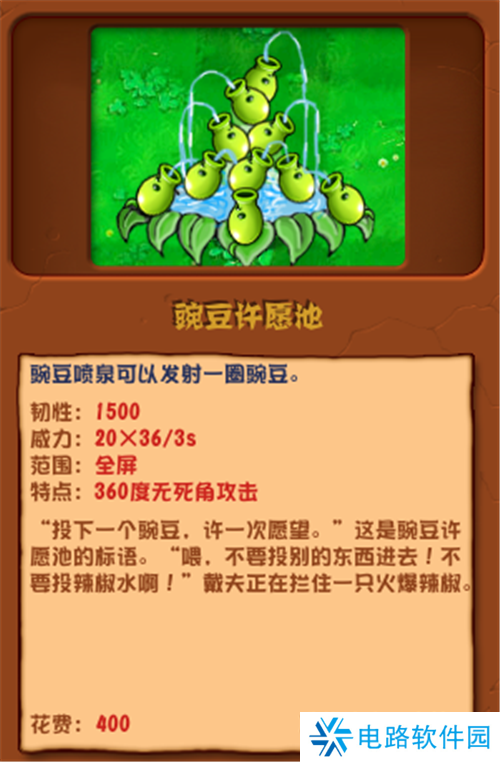 评价:400阳光的高昂代价,却仅发射普通豌豆。宛如将豌豆捧在掌心,它却将你推向僵尸的怀抱。建议搭配附魔型植物,以增强其实战效果。