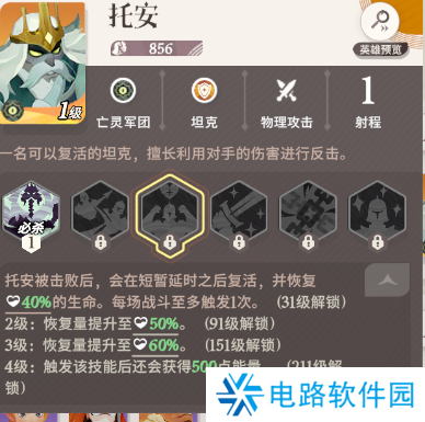 前排坦克之星——托安:独享复活神技,分摊伤害加吸血,既坚韧又输出,前排首选,战斗续航无敌。