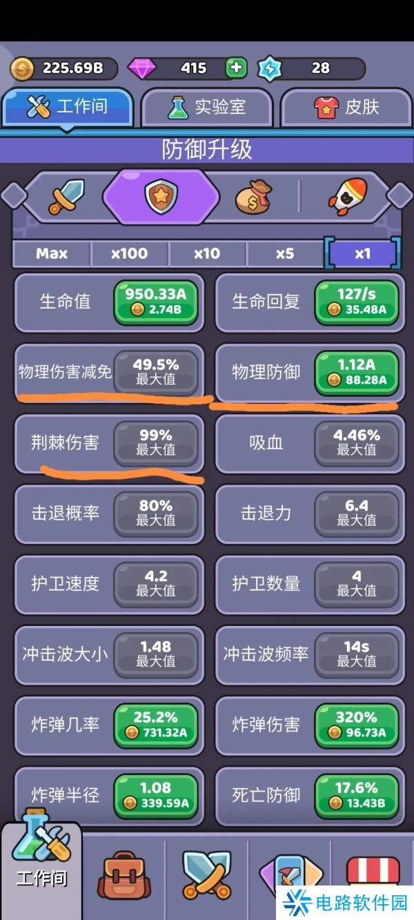 这第三个槽主要研究攻击、攻速打中后期基础,副用来研究一些功能如难3的小机器人解锁后需要的自动能力点击器,护卫流的死亡射线可对boss造成伤害、护卫可对boss造成伤害。