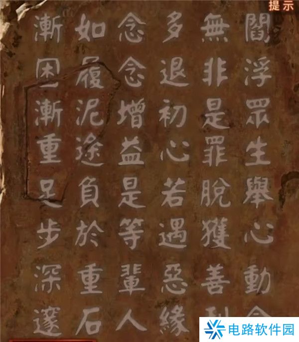 9、剧情后把石片放在左上角的石碑上,开始玩记忆小游戏了,这里给推荐一种作弊方法,拿上上面那张图,发送给自己的qq号,然后使用另一个手机登录qq接收图片,打开随便一个编辑软件,点击开始后跳那个字就在那个字上面写顺序~完成之后石碑裂开,进入就可以找到女主了。