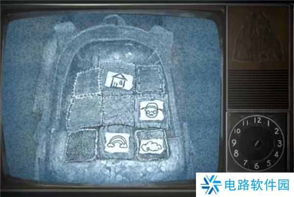 7、然后就可以进入佛像下面的门了,进门后发现只有一台显示器亮着,查看一下上面的图案很眼熟,按住图案是可以拖动的,拖动图案换一下位置到书页上的位置,电视画面开始变化,等停止变化时从电视里上的书包里拿到洋娃娃和第二个圆球。