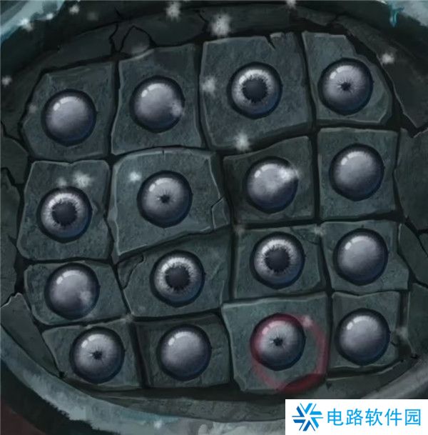 21、小高能过后电视上的眼睛是有两种形态的,大瞳孔和小瞳孔,眼睛位置也是会变化的,这里就把两张图合在一起吧,大概就是第一行3大4小,第二行1大2小,第三行2大3大,第四行1小3小,记好后就可以后退一下来到冰雪世界,查看右边墙上的机关开始调整了。