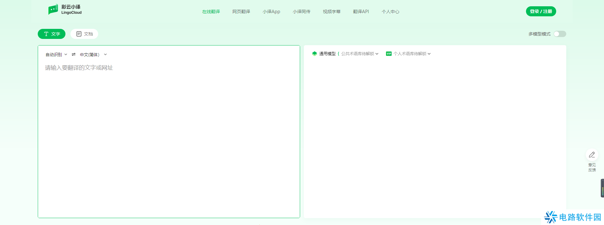"彩云小译"有独立的app也有网页版,都可以满足用户的翻译需求,下方地址为网页版,无需登录即可使用翻译功能。
