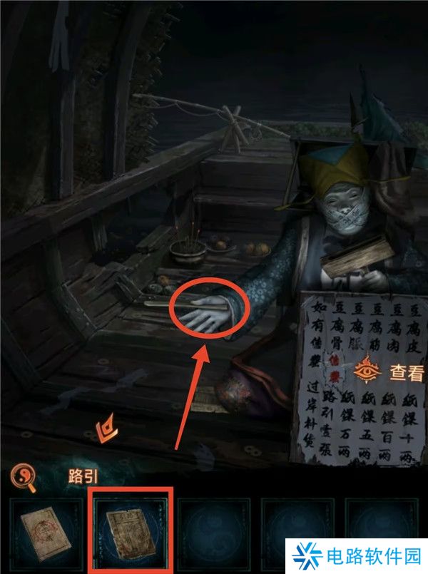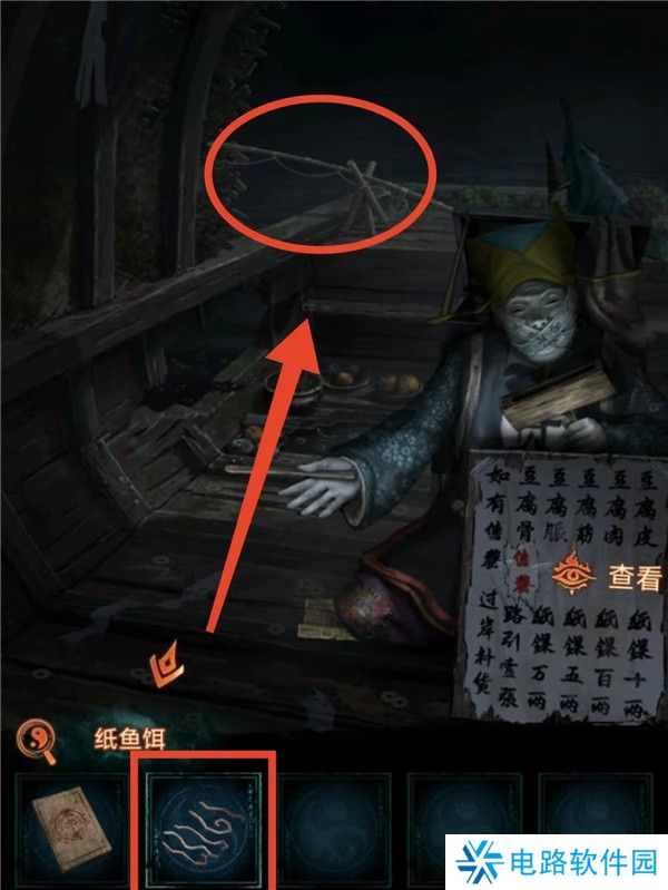 8、把纸鱼给钓鱼佬挂上,钓鱼佬会把饵料送你,上船,现在你就是钓鱼佬,不过运气不错钓上关键线索乌龟,回露台按顺序点击龟壳获得路引,把路引给老八渡娘后通关。