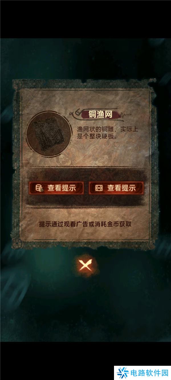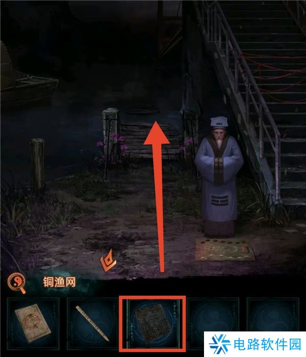 2、解谜如下图所示获得渔网,去河边铺上过去捡铜钱。