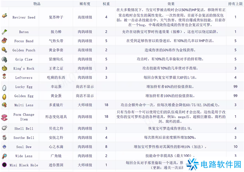 宝可梦肉鸽全道具详解及图鉴/宝可梦肉鸽重要道具介绍